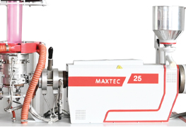 Die MaxTech®Hochleistungsextruder sind in der Lage eine ausgezeichnete Schmelze Homogenität bei niedriger und unkritischer Schmelzetemperatur zu generieren. Die optimierte Schneckengeometrie ermöglicht ein relativ weites Verarbeitungsfenster. Alle Extruder sind auf Rädern montiert und als kompakte unabhängig funktionierende Einheiten (stand alone) ausgelegt. Zusätzlich können die Extruder in der Höhe verstellt werden, sodass verschiedene Extrusionseinheiten einfach und leicht für verschiedene Anwendungen adaptiert werden können. Dieses kompakte und modulare Designkonzept benötigt den geringsten Platzbedarf und ermöglicht in einfacher Weise zukünftige Erweiterungen oder Ergänzungen der kompletten Anlage. Eine breite Auswahl von Schneckenauslegungen steht zur Verfügung, um verschiede Anforderungen und Anwendungen zu befriedigen. Die am häufigsten eingesetzten Typen sind, die Drei-Zonen-Schnecke, Barriereschnecken und VBET-Schnecken (variable barrier energy transfer screw). Andere Schenckenauslegungen und Sepzialdesign für spezielle Anwendungen sind ebenfalls verfügbar oder werden auf Kundenwunsch angefertigt.