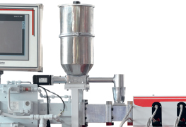 Die Seitenbeschickung führt dem Extruder Füllstoffe, Fasern oder Masterbatches zu. Das System ist für eine einfache Demontage und schnelle Umrüstung ausgelegt.